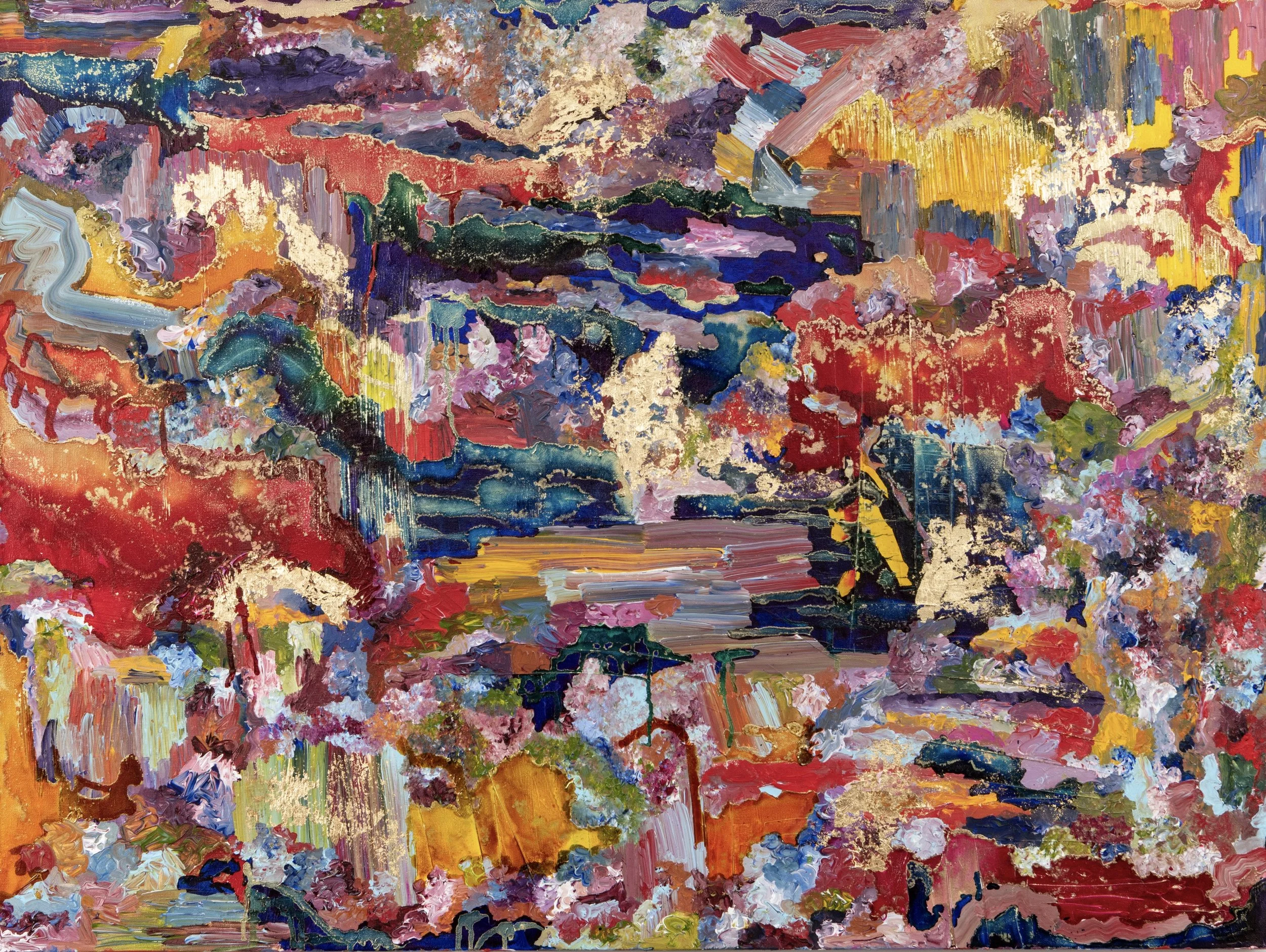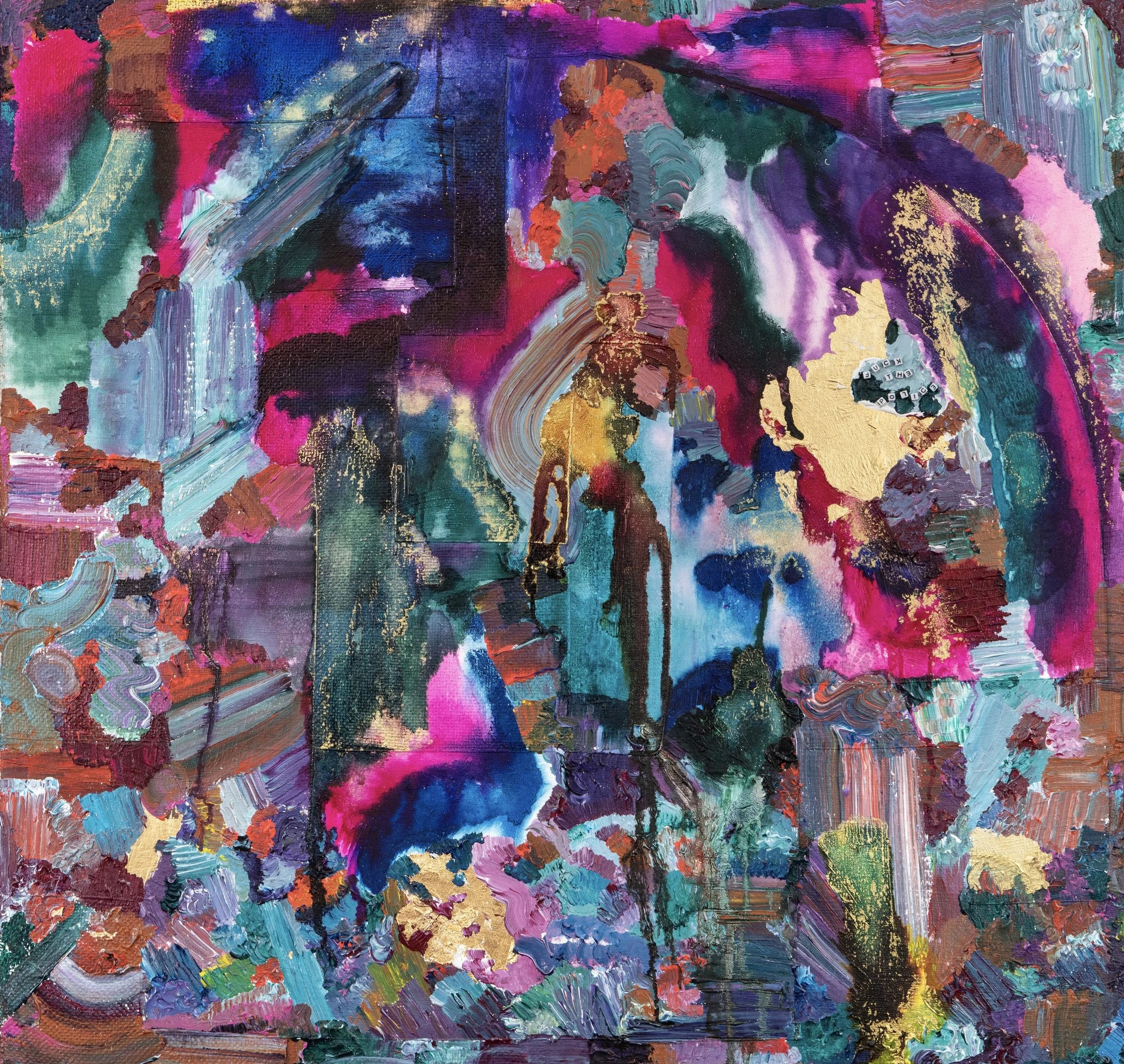 A World Without CEO’s, 2021, acrylics, alcohol inks, gold leaf