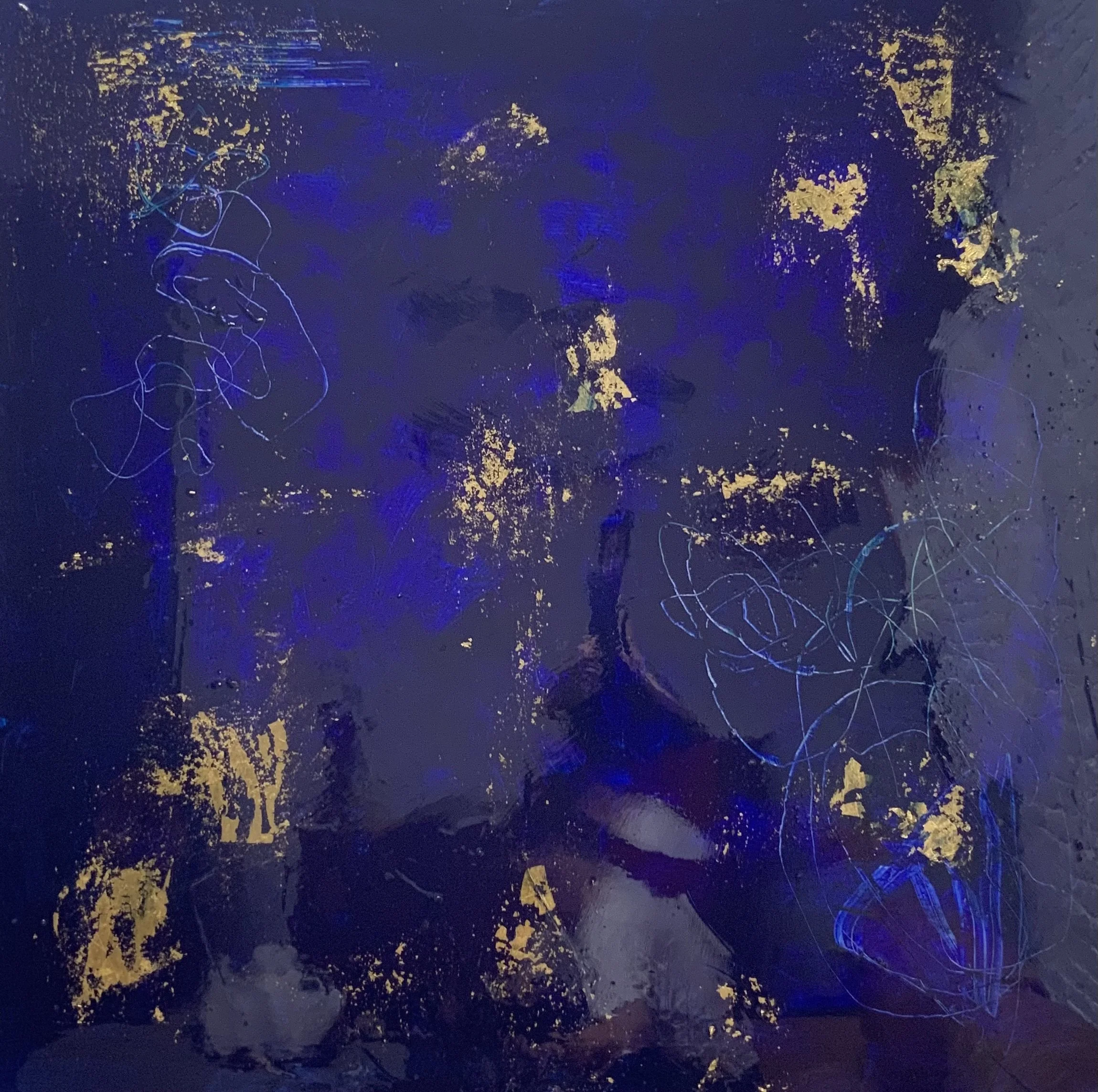 “Blue”, 2023 - acrylics, gold leaf, resin, plaster
