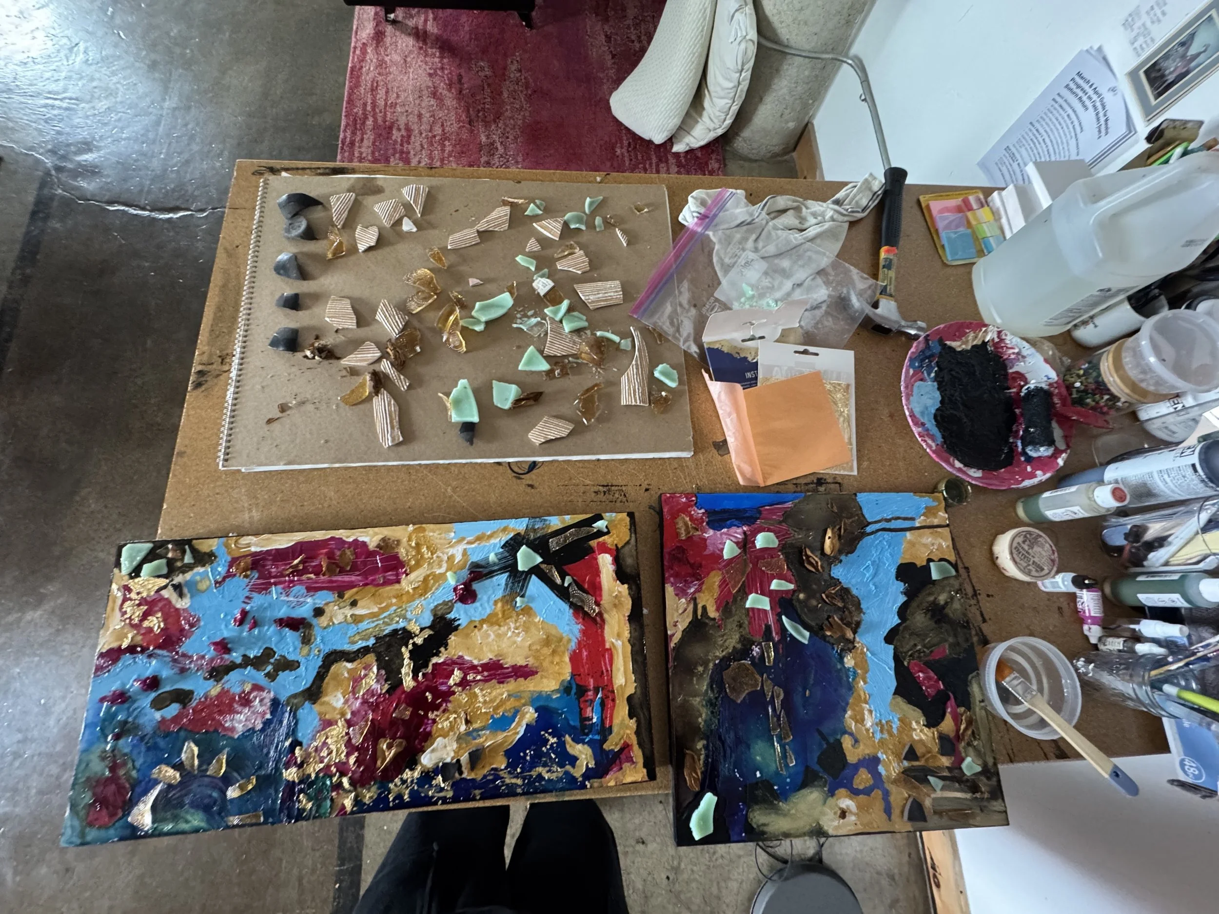 Process Shot: “34”, 2025 - acrylics, gold leaf, resin, plaster, found objects, dried flowers
